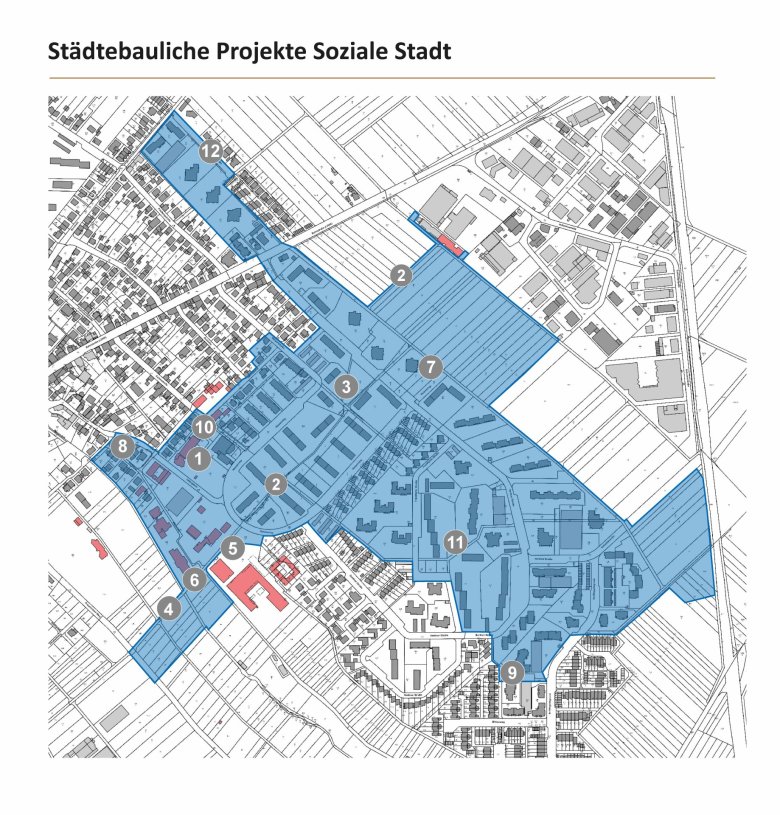 Mit dem Städtebauförderprogramm „Soziale Stadt“ unterstützt der Bund und das Land Hessen die Kommunen bei der Entwicklung städtebaulicher Perspektiven, der strukturellen und gestalterischen Aufwertung sowie der Verbesserung der Lebensbedingungen in den Quartieren. Zentrales Element ist die Aktivierung bürgerschaftlichen Engagements sowie eine stärkere Vernetzung und Kooperation. Ein aktives Quartiersmanagement unterstützt die Prozesse und fördert die Netzwerkarbeit vor Ort.
