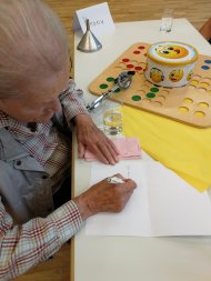 Und die Seniorinnen und Senioren, die von Avendi oder über die Brücke teilnahmen? Die hatten mit den Schülerinnen und Schülern einfach endlich mal wieder gemeinsame Zeit, die beide Generationen mit Genuss nutzten. Beispielsweise um Spiele zu machen, sich über Zeitgeschichte aus den früheren Zeiten der Senioren zu unterhalten, um kleine Holzarbeiten unter Anleitung eines jahrzehntelang geschulten Auges zu bearbeiten und vor allem um sich gegenseitig Aufmerksamkeit zu schenken, einander zuzuhören und voneinander zu erfahren. Gefühlt viel zu schnell war der letzte Begegnungstag gekommen, der Dank Avendi mit einem leckeren gemeinsamen Eis essen gekrönt war. Abgeschlossen wurde das Projekt in der Phorms-Schule Anfang Juli mit einer Feedbackrunde in der Klasse durch Heike Dittrich, die die Klasse zusammen mit Katja Müller im Projekt begleitet und Bärbel Andresen, Quartiersmanagement. Die Schülerinnen und Schüler bescheinigen, dass sie im Sozial-Ökologischen Schuljahr viel dazugelernt haben, Erfahrungen machen durften, die der Schulalltag gemeinhin nicht ermöglichen kann, dass es ihnen eine Freude ist, mit der älteren Generation zusammen zu kommen (insbesondere, wo viele eigene Großeltern weit weg leben), dass sie sich sowohl für den ökologischen Teil als auch für den sozialen mehr Zeit gewünscht hätten. Sie bestätigen damit, dass in diesem Projekt etwas Kostbares und Wertvolles entsteht.