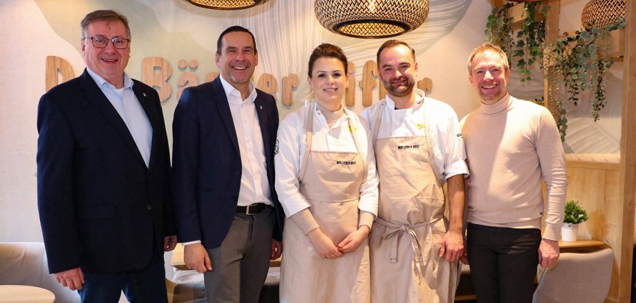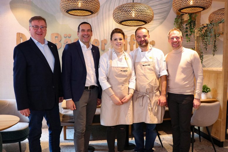Bürgermeister Steffen Bonk war zusammen mit Nicole Gruber von der städtischen Wirtschaftsförderung, Walter Schütz, Vorsitzender des Gewerbevereins sowie Erster Stadtrat Lars Knobloch in seiner Funktion als zweiter Vorsitzender des Gewerbevereins zu einem Besuch, um die neuen Pächter herzlich in Steinbach willkommen zu heißen.